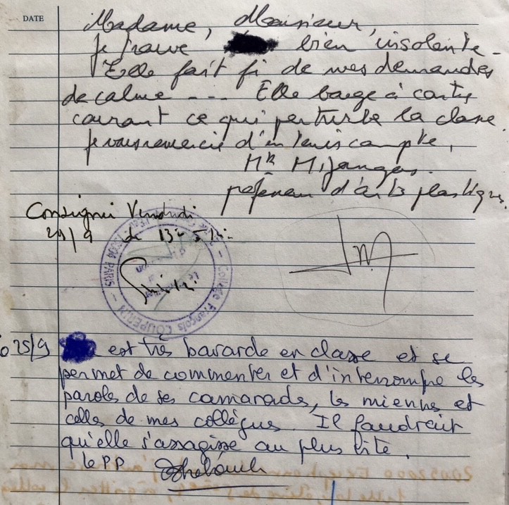 On y est. Deux mots dans le carnet, un petit pipi au lit : c’est un appel à l’aide ! Chez le psy ma chérie.