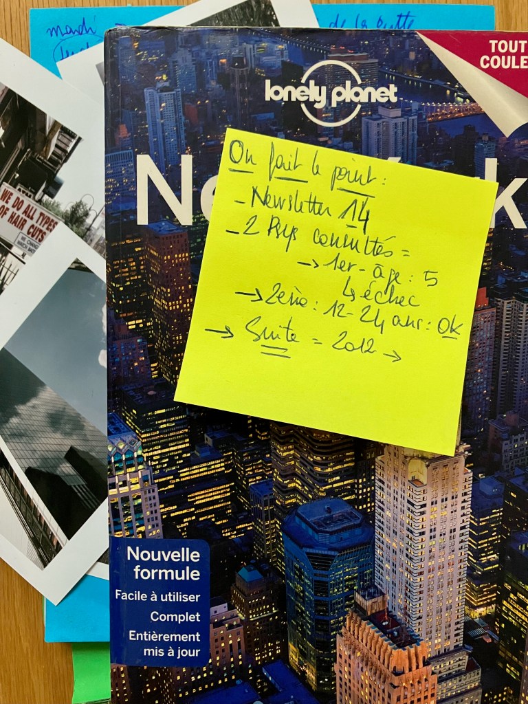 La Généreuse me fait une surprise car elle a grand cœur (elle va même à l’église). Un aller-retour pour New York, logement à la clé, tu y restes seule deux semaines comme tu voulais et je te retrouve après. Quelle chance, je me répète, New York pas très chamanique mais qui sait merci merci non vraiment fallait pas.